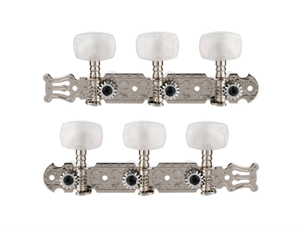 AOD-018C(W) Комплект хромированной механики 35мм для классической гитары с пластиковой втулкой с отверстием по центру, с перламутровой ручкой. Alice